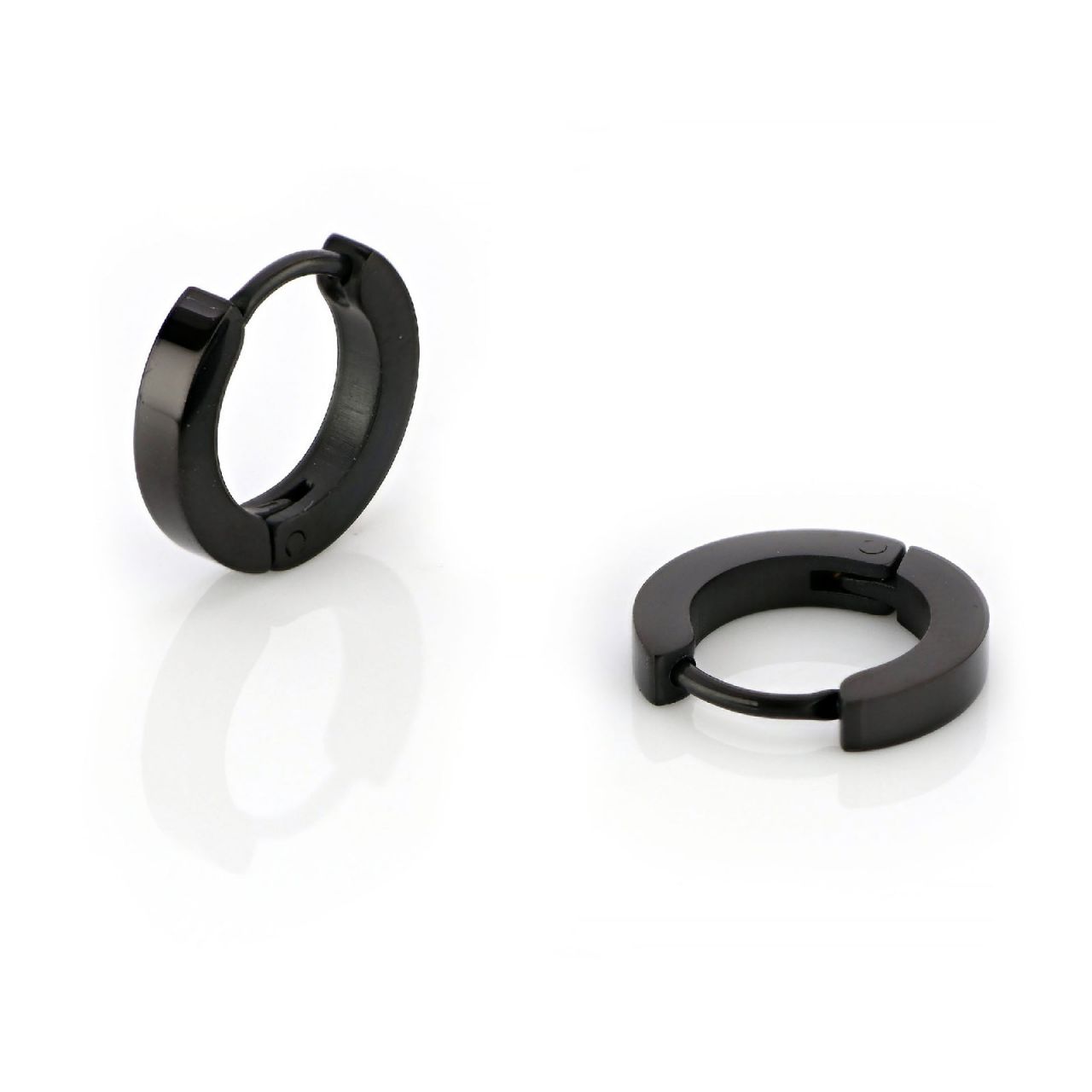Ανδρικά σκουλαρίκια ατσάλινα από ανοξείδωτο ατσάλι σε μαύρο χρώμα HOOPS (& UNISEX) για όλες τις ηλικίες! 2,5 mm πάχος και 14 mm εξωτερική διάμετρο - συσκευασία 2 τεμαχίων (ζευγάρι)