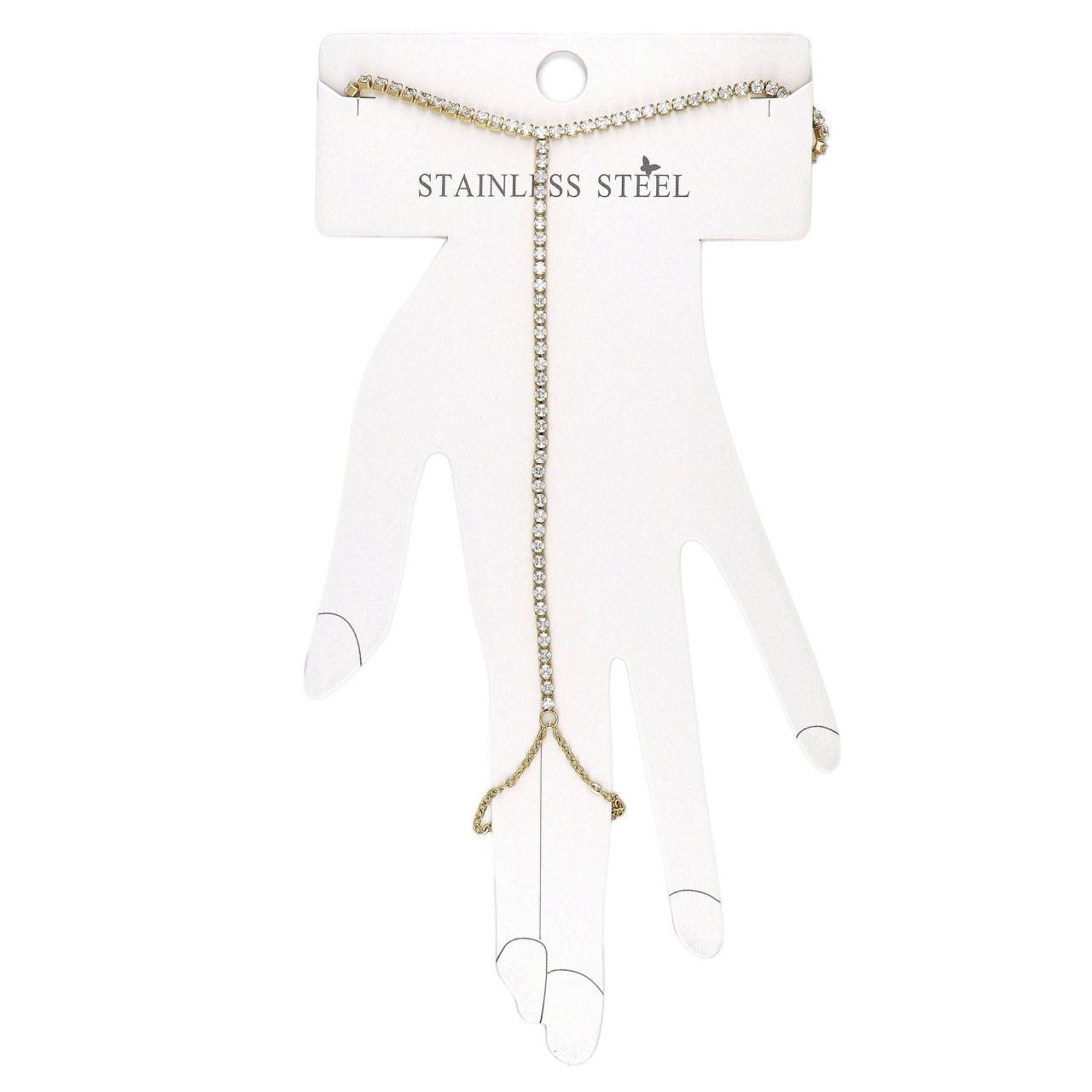 Βραχιόλι - δαχτυλίδι από ανοξείδωτο ατσάλι επίχρυσο ριβιέρα με λευκά ζιργκόν. Μήκος για το καρπό 17εκ και προέκταση 3εκ . Ένα κόσμημα που τραβάει την προσοχή!