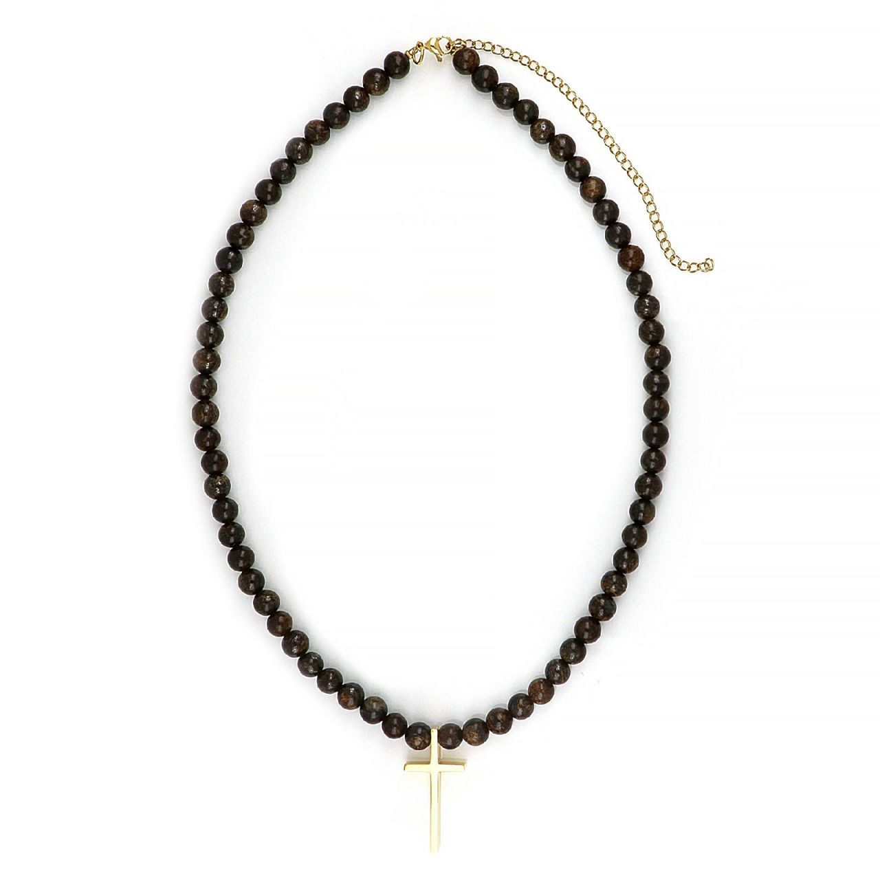 Ανδρικό κολιέ με αχάτη και επίχρυσο ατσάλινο σταυρό. 45+10 cm extension για να ταιριάζει σε όλους. Το σύμβολο της πίστης. Ιδανικό και για κάθε γιορτή!