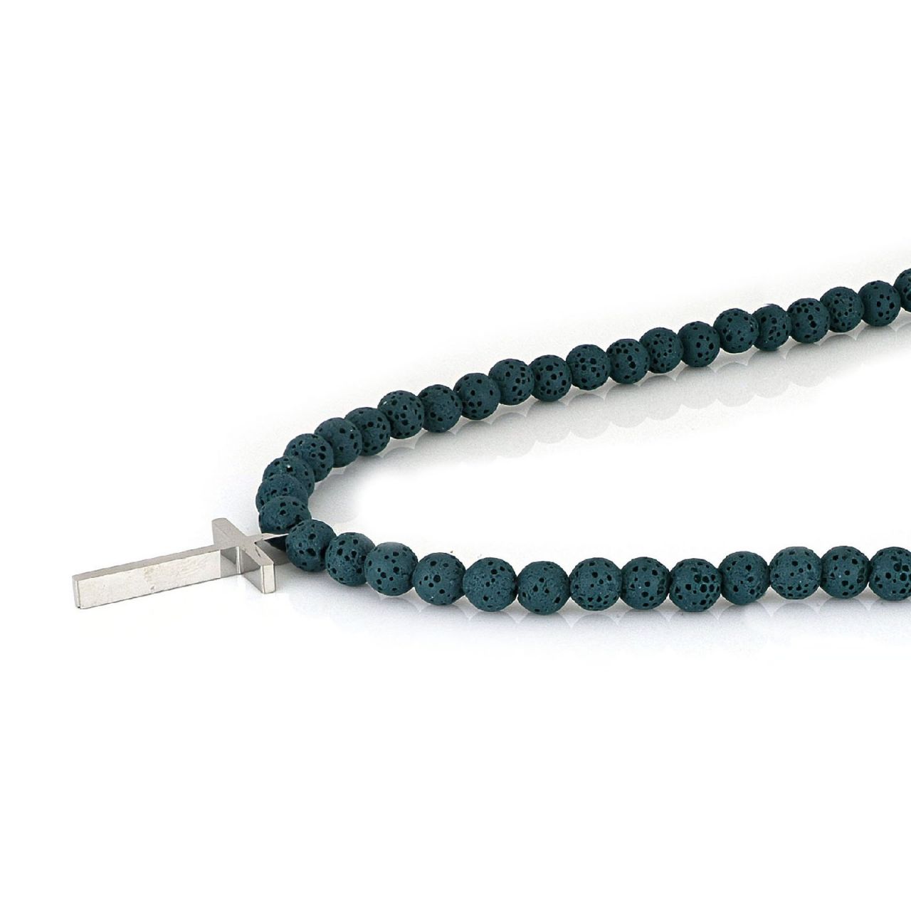 • Ανδρικό κολιέ με πράσινη λάβα και ατσάλινο σταυρό -
