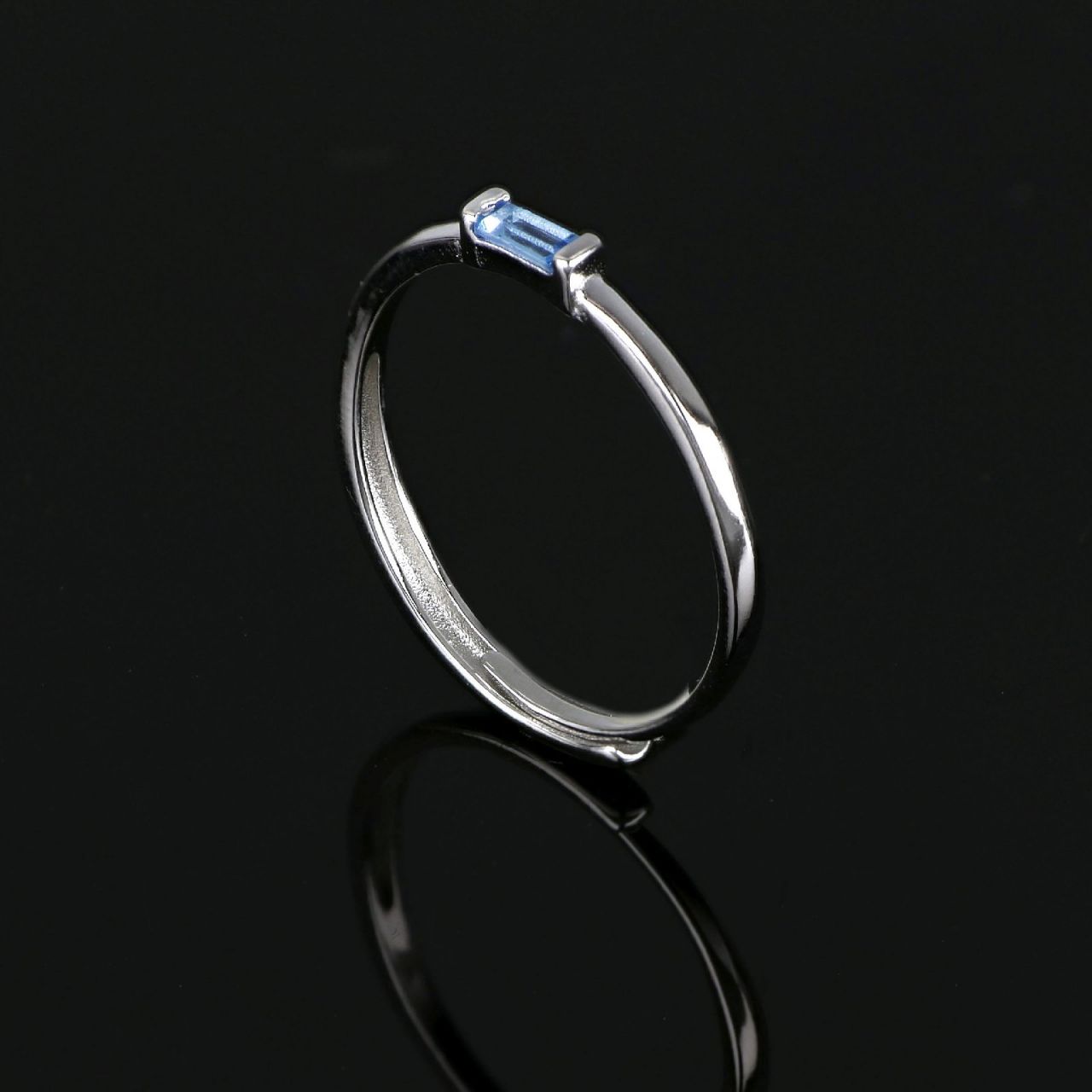 925 Sterling Silver ring with light blue cubic zirconia stone. It elegantly "decorates" your hand. Width 2 mm.