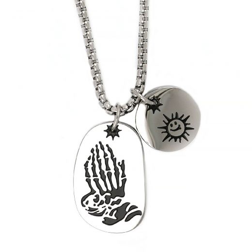 Men's stainless steel pendant with skeleton hand and sun and chain (ME22052)