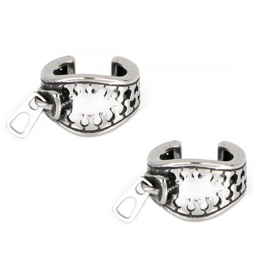 Unisex stainless steel non pierced earrings with zipper design. Original and special! 9mm thick and 14mm outer diameter.