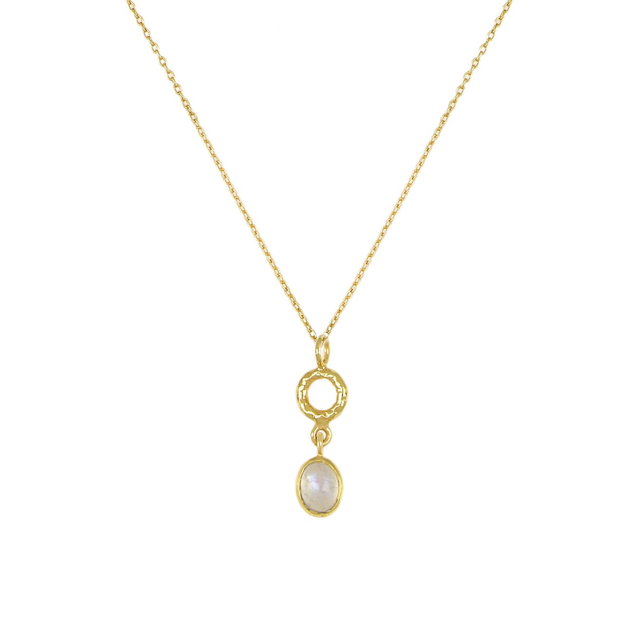 Handmade silver necklace gold-plated with moonstone 6.5x5mm. A unique choice for elegant looks. Chain length 40+5 cm.