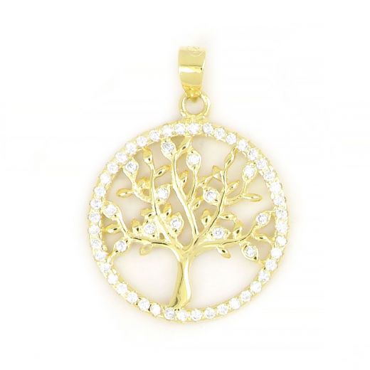 925 Sterling Silver gold plated pendant with tree of life and white cubic zirconia (ME11412-02)