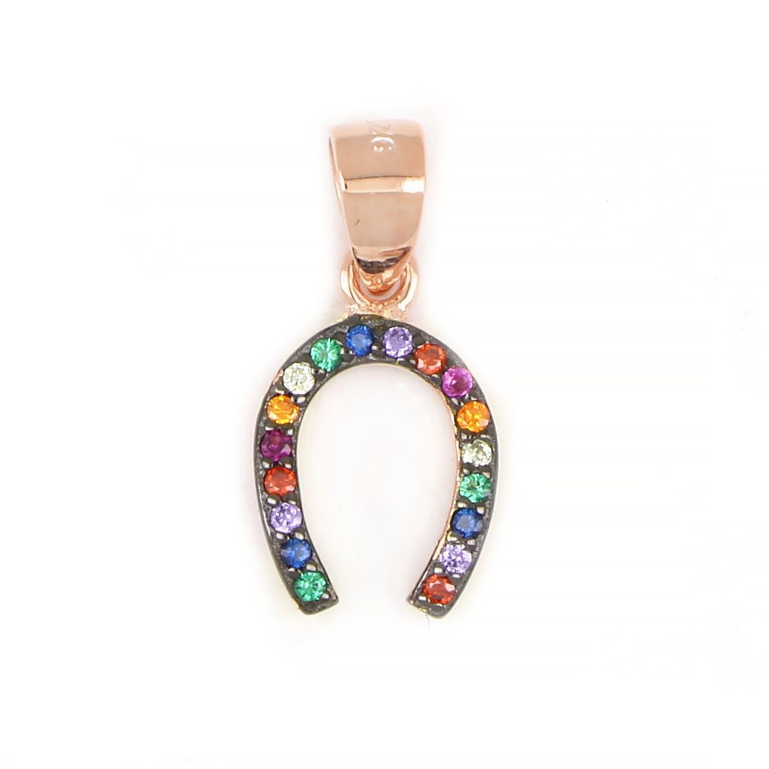 925 Sterling Silver pendant, ROSE GOLD plated! A LUCKY HORSESHOE with multicolored cubic zirconia, just charming! Dimension 18x8 mm.